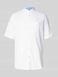 Koszula casualowa męska Christian Berg Men;Czysta bawełna;Krój regular fit;Stójka;Listwa guzikowa;Kieszeń na piersi zapinana na guzik;Krótki rękaw;Długość tyłu w rozmiarze M: 80 cm;Szerokość ramion w rozmiarze M: 46 cm;Długość rękawa w rozmiarze M: 29 cm