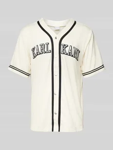 Koszula casualowa męska Karl Kani;Krój regular fit;Dekolt w serek;Listwa z zatrzaskami;Wyhaftowane logo;Krótki rękaw;Długość tyłu w rozmiarze M: 75 cm;Szerokość ramion w rozmiarze M: 48 cm;Długość rękawa w rozmiarze M: 27 cm