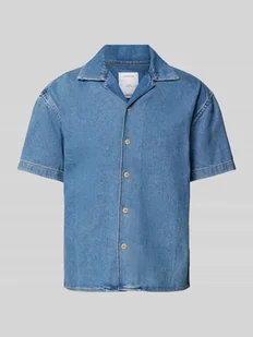 Koszula jeansowa męska JACK & JONES;Czysta bawełna;Krój regular fit;Model ‘CABANA’;Wykładany kołnierz;Listwa guzikowa na całej długości;Rękaw o dł. 1/2;Długość tyłu w rozmiarze L: 68 cm;Szerokość ramion w rozmiarze L: 49 cm;Długość rękawa w rozmiarze L: 22 cm