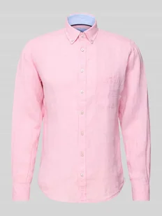 Koszula lniana męska Fynch-Hatton;Czysty len;Krój regular fit;Kołnierzyk typu button down;Listwa guzikowa na całej długości;Kieszeń na piersi;Długość tyłu w rozmiarze M: 67 cm;Szerokość ramion w rozmiarze M: 41 cm;Długość rękawa w rozmiarze M: 66 cm