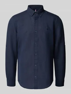 Koszula lniana męska Lerros;Mieszanka lnu i bawełny;Krój regular fit;Kołnierzyk typu button down;Listwa guzikowa na całej długości;Wyhaftowane logo;Długość tyłu w rozmiarze M: 74 cm;Szerokość ramion w rozmiarze M: 40 cm;Długość rękawa w rozmiarze M: 66 cm