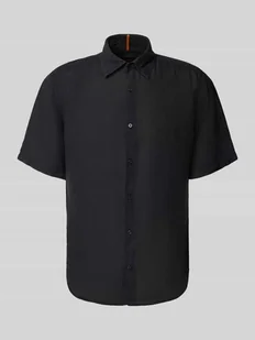 Koszula lniana męska BOSS Orange;Czysty len;Krój regular fit;Model 'Rash';Kołnierzyk typu kent;Listwa guzikowa na całej długości;Rękaw o dł. 1/2;Detal z logo;Długość tyłu w rozmiarze M: 74 cm;Szerokość ramion w rozmiarze M: 44 cm;Długość rękawa w rozmiarze M: 29 cm
