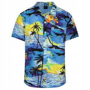 KOSZULA MĘSKA HAWAJSKA W PALMY KWIATY PLAŻA MORZE C1 NIEBIESKA - XXXL