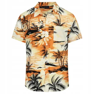 KOSZULA MĘSKA HAWAJSKA W PALMY KWIATY PLAŻA MORZE D1 POMARAŃCZOWA - XXL