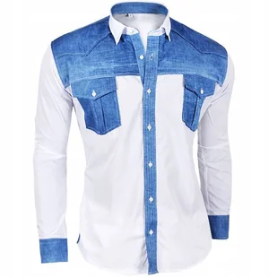 Koszula Męska Łączona Jeans Denim Casual Jeansowa