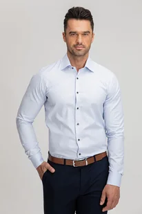 Błękitna koszula w biznesowy mikrowzór ze 100% bawełny. SPRAWDŹ