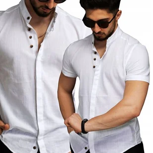 Koszula Męska Bawełna Len Stójka Na Lato Przewiewna Lniana Island Vibes r.L