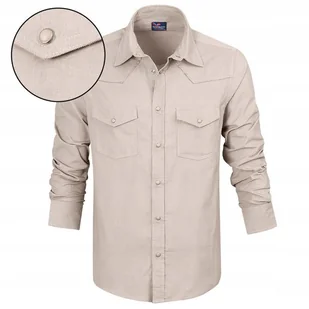 KOSZULA Męska SZTRUKSOWA z Długim Rękawem BEŻOWA Regular Fit Pako Jeans