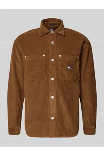 Koszula sztruksowa męska Tommy Jeans;Efekt: jednolity kolor;Krój: Krój relaxed fit;Kołnierzyk koszulowy: Kołnierzyk typu kent;Listwa guzikowa: na całej długości;Aplikacja: