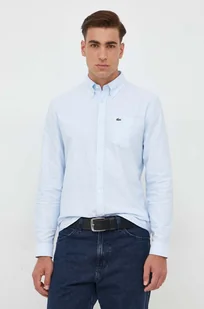 Lacoste koszula bawełniana męska kolor niebieski regular z kołnierzykiem button-down