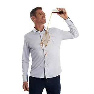 Męska koszula bez prasowania, odporna na zagniecenia, odpycha plamy, bez smug potu, antyzapachowa, oddychająca, męska koszula z długim rękawem Entalle Średni Fit, Granatowy kolor w paski, L