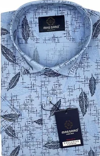 Niebieska koszula męska z krótkim rękawem z lycrą we wzory REGULAR-FIT