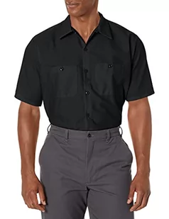Red Kap Męska koszula w stylu industrialnym, z krótkim rękawem i guzikami, koszula robocza, czarny, L/Długi