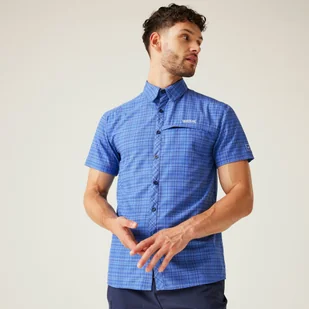 Regatta Męska koszula z krótkim rękawem Travel Packaway przeciw insektom Niebieski, Rozmiar: L