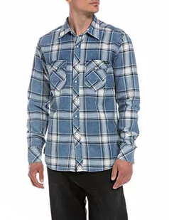 Replay Męska koszula z długim rękawem z bawełny, Medium Blue/Natural White 010, XS