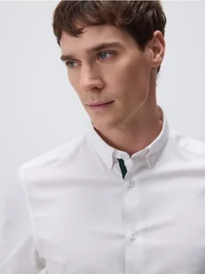Koszula o regularnym kroju, wykonana z bawełnianej tkaniny.