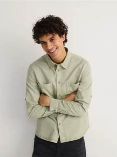 Koszula o regularnym kroju, wykonana z bawełnianej tkaniny.