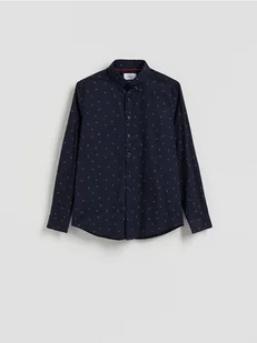 Reserved - Koszula slim fit w świąteczny wzór - granatowy