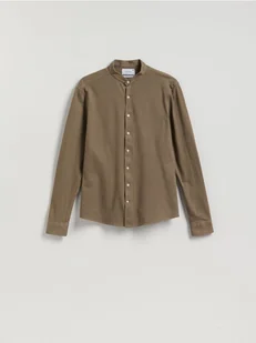 Reserved - Koszula super slim z bawełny egipskiej - ciemnozielony