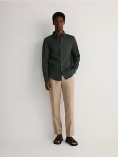 Reserved - Lniana koszula regular fit - zielony