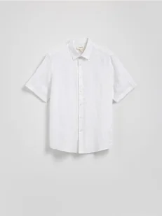 Koszula o dopasowanym kroju, wykonana z lnianej tkaniny.