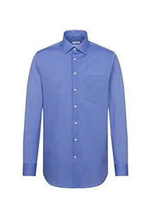 Seidensticker Męska koszula biznesowa, krój regularny, nie wymaga prasowania, kołnierz Kent, długi rękaw, 100% bawełna, niebieski (średni niebieski), 44