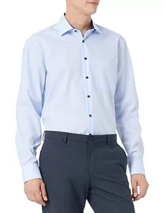 Seidensticker Męska koszula biznesowa o prostym kroju – Regular Fit – nie wymaga prasowania – kołnierz Kent – długi rękaw – naszywka – kieszeń na piersi – 100% bawełna, niebieski (jasnoniebieski), 38