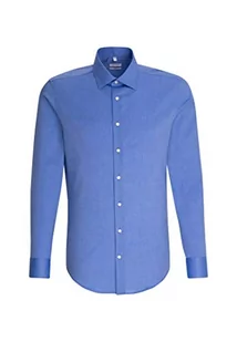 Seidensticker Męska koszula biznesowa – slim fit – nie wymaga prasowania – kołnierz typu kent – długi rękaw – naszywka – 100% bawełna, średni niebieski, 41