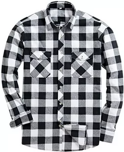 siliteelon Męska koszula flanelowa z długim rękawem na co dzień w kratę koszula zapinana na guziki, Czarny - biały, L