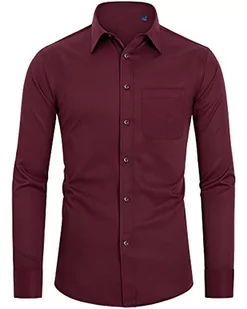 siliteelon Męska koszula ze stretchu, z długim rękawem, męska koszula casualowa, regularny krój, koszule rekreacyjne, łatwe prasowanie, garnitur biznesowy, czerwony, XL