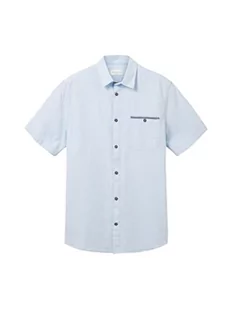TOM TAILOR Chambray męska koszula z krótkim rękawem z kieszenią na piersi, 31852 - Blue White Chambray, 3XL