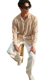 TRENDYOL MAN KOSZULA MĘSKA BEŻOWA Z DŁUGIM RĘKAWEM I KOŁNIERZYKIEM M 5DA