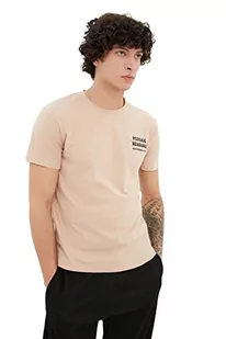 TRENDYOL Męska koszula Slim Standard Crew Neck Woven, beżowa, L, beżowy, L