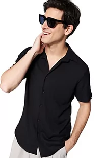 Trendyol Męska koszula z dzianiny o regularnym kroju z kołnierzem, Czarny, S