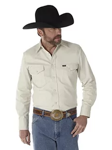 Wrangler Męska koszula robocza z długim rękawem w stylu kowbojskim, sprane wykończenie, guziki, nieprzejrzysta, KAMIEŃ, L Długi