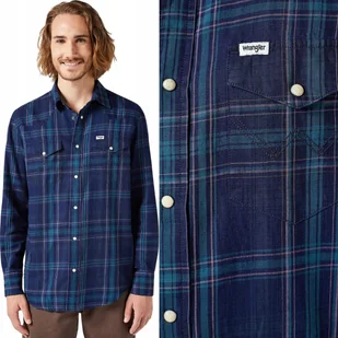 █ Wrangler Western Shirt Regular Fit Black Iris BAWEŁNIANA KOSZULA W KRATĘ rozmiar M █ Koszula firmy Wrangler Model: Western Shirt z kolekcji We Care, Wrangler Krój klasyczny, regular fit Zapinana na zatrzaski Dwie kieszenie z klapkami zapinanymi na zatrzaski, lewa z naszywką z logo Kolor: krata w odcieniach granatowym, zielonym i różowym (black iris) Bawełna bez dodatku streczu Wash (kod producenta): 112350490 - Rozmiar M szerokość pod pachami: 55 cm szerokość w ramionach: