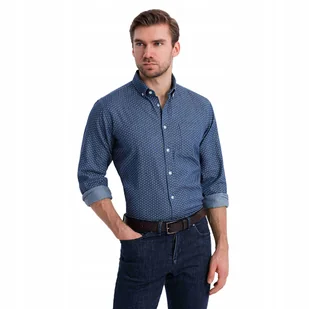 Wzorzysta męska koszula z cienkiego jeansu niebieska OM-SHDS-0179 V2 r. M