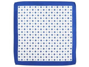 Biała poszetka w niebieski geometryczny wzór E350 Biała poszetka w niebieski geometryczny wzór E350 Wymiary poszetki: 30cm x 30cm. Wzór: Inny Dominujący kolo...