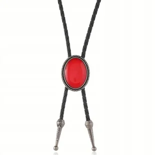 BOLO KRAWAT Kowbojski naszyjnik TEXAS rzemyk medalion CZERWONY KAMIEŃ retro
