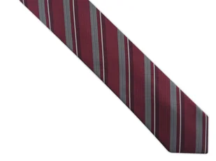 Bordowo-szary krawat męski w paski D368 Długość: 152 cm Szerokość: 7,5 cm Wysokiej jakości tkanina - 100% mikrofibra Unikatowa technologia DuPont Teflon Fabr...