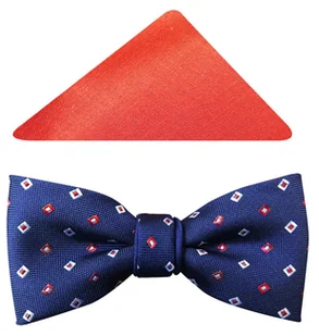 Granatowa mucha męska w biało-czerwone romby A53 Granatowa mucha męska w biało-czerwone romby. Stylowy dodatek w atrakcyjnej cenie! W zestawie muszka oraz po...