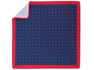 Granatowa poszetka w białe i czerwone kropki E314 Granatowa poszetka w białe i czerwone kropki E314 Wymiary poszetki: 31cm x 31cm. Wzór: Kropki / grochy Domi...