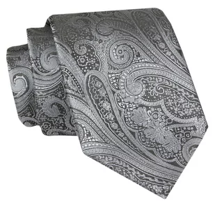 Męski Krawat - Grafitowy, Wzór Orientalny - Angelo di Monti