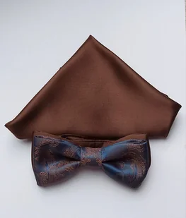 Elegancka, klasyczna mucha w kolorze granatowo brązowym firmy Projekt ASz. - Regulowany pasek w kolorze muchy o maksymalnym obwodzie do 52 cm. - Materiał 100 % poliester - Wysokość muchy 6 cm. - Sze ...
