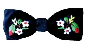 Mucha kociewska Piękna mucha wykonana z aksamitnego materiału, ręcznie haftowana z motywem haftu kociewskiego. Regulowana, na okrągłej gumce. Muchy są haftow...