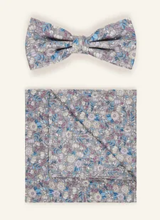 **Mucha:**. Mucha z regulacją długości z zapięciem na haftkę. Wstępnie związana. Podwójna pętla. Kwiatowy wzór. Czysta bawełna**Poszetka:**. Kwiatowy wzór. Lekki materiał. Czysta bawełna