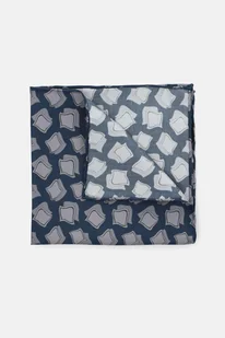 Męska poszetka z wzorem na granatowym tle. Wykonana w 100% z jedwabiu. Dzięki uniwersalnemu rozmiarowi 33x33cm dobrze mieści się w kieszeni marynarki. Skład ...