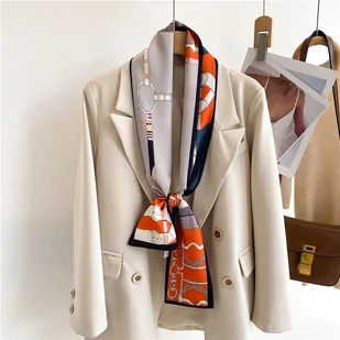 100% poliester; doskonale imitujący jedwab, wysokiej jakości, przylegający do skóry i przepuszczający powietrze, miękki i gładki jak satyna, bezpieczny i ekologiczny, bez zanieczyszczeń i specyficznego zapachu. Tkanina pięknie się układa, dodając elegancji każdej stylizacji. To idealny dodatek do każdego stroju! Dzięki swojej miękkości, szalik nie tylko wygląda pięknie, ale także jest komfortowy w noszeniu, - przeznaczenie: szal może być owinięty wokół szyi, talii, nadgarstka, kostki, a także torebki czy kapelusza (owinięty wokół ronda), może posłużyć także jako pasek do spodni, na różne sposoby wiązania i noszenia.