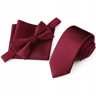 Zestaw krawat + mucha + poszetka - bordowy