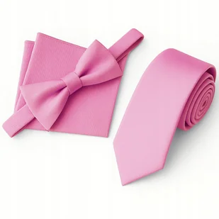 Zestaw krawat + mucha + poszetka - jasny różowy